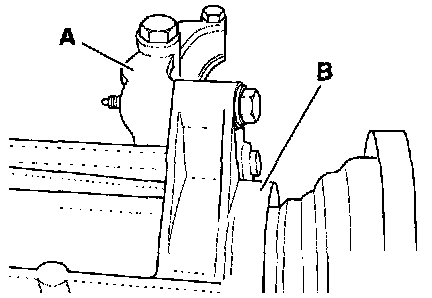 - First tighten transmission carrier -A- to bearing housing -B- and then to engine.