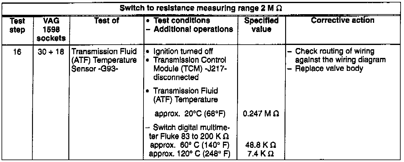 Table I (Test Step 16)