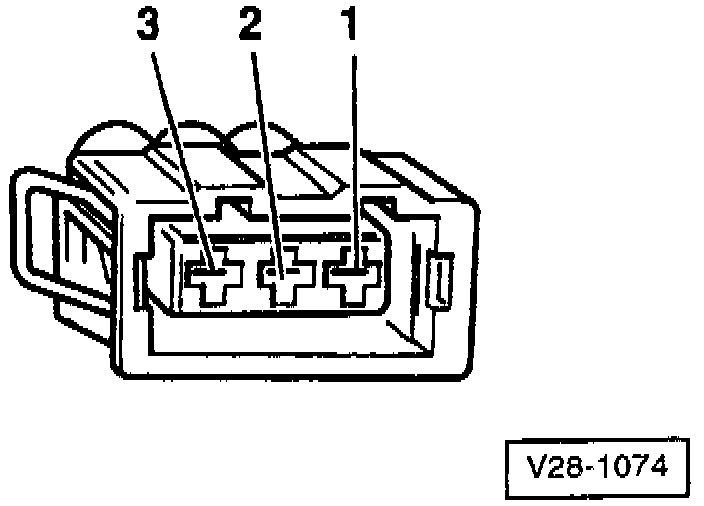 - Connect Fluke 83 hand multimeter (US 1119 or equivalent) to measure voltage across disconnected plug terminals -1- and -3-, using cables from VAG 1594 adapter kit.