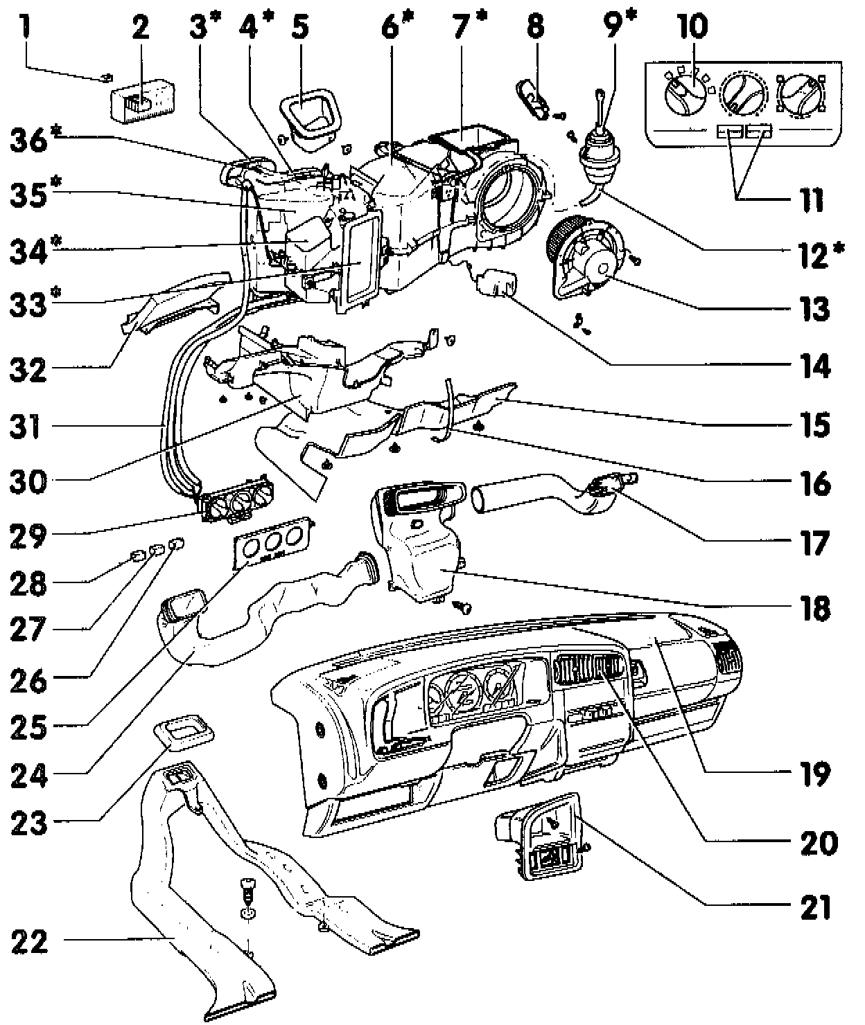 Note: A/C system must be discharged before removing components marked with an asterisk (*)