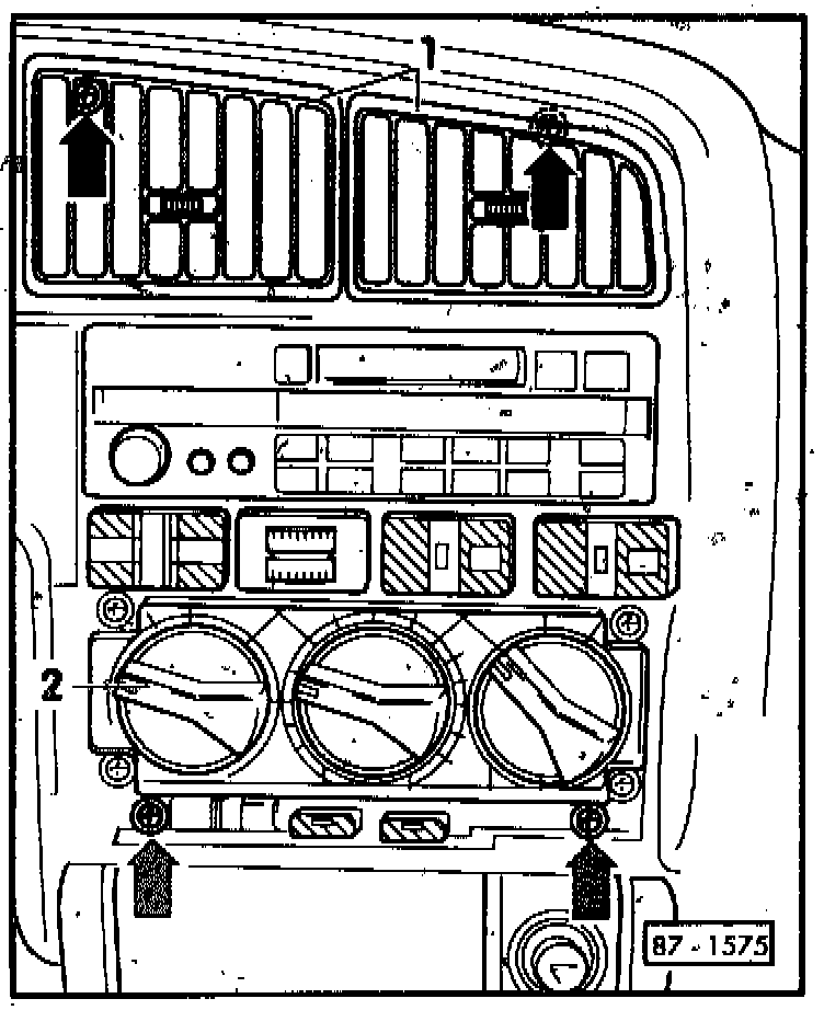 - remove four screws (arrows) and remove fresh air blower -2- downwards