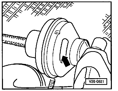 - EGR valve diaphragm rod is pulled toward vacuum hose connector (observe diaphragm rod through opening -arrow-) = Exhaust gas is being supplied