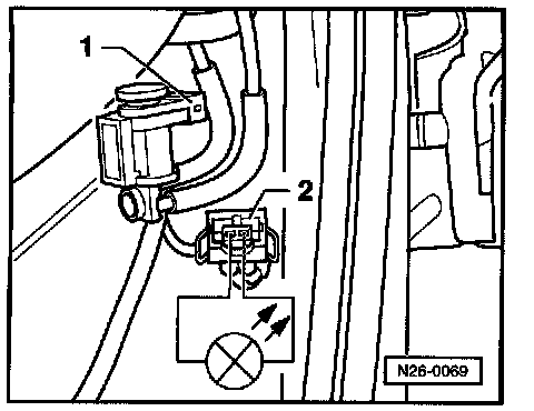 - Disconnect 2 pin harness connector -2- from EGR two-way valve N161, -1-
