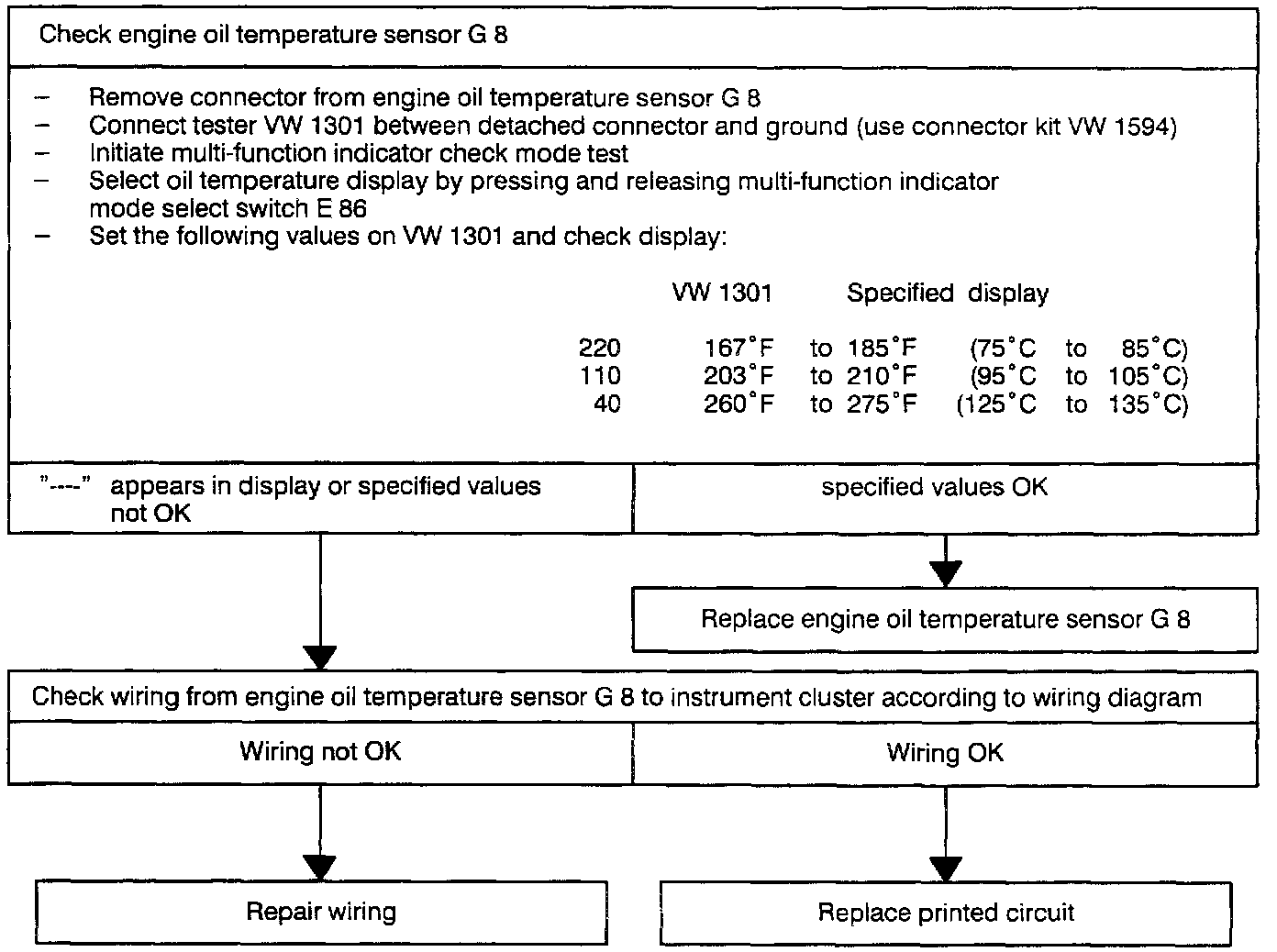 Checking engine oil temperature gauge