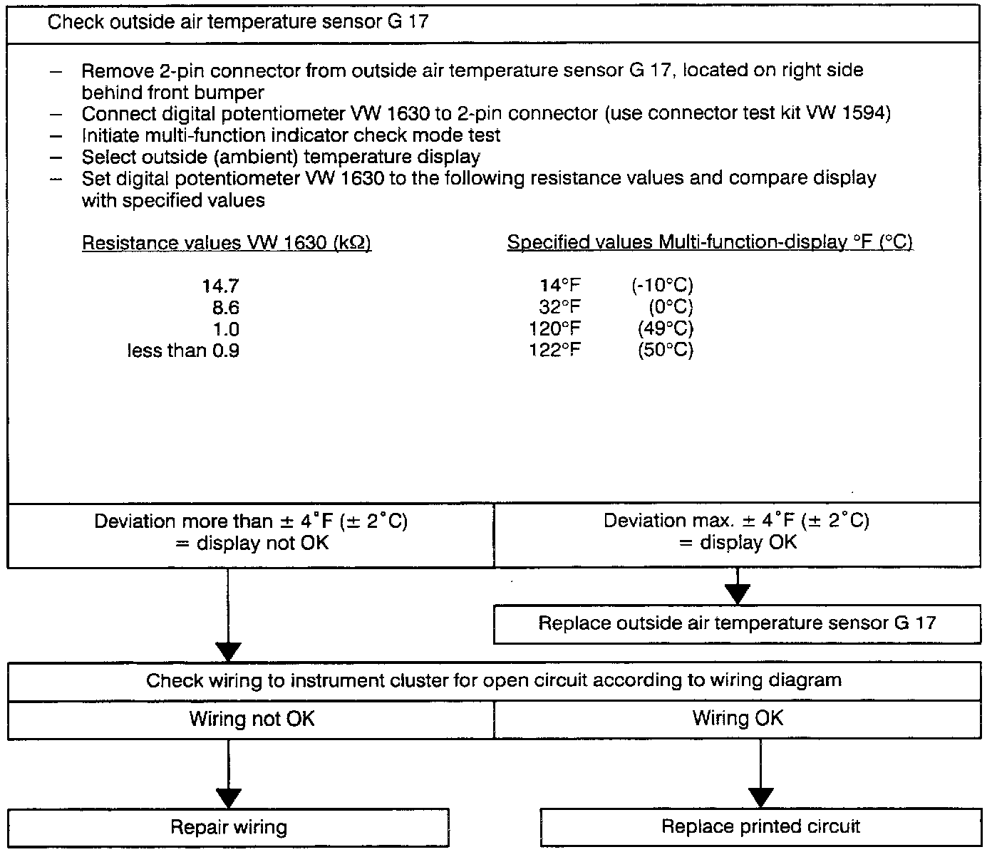 Deviations up to max. ±4% between actual and calculated driving distance are permissible. If the deviation is more than 4%, see "Speedometer vehicle speed sensor G22 checking". If the wiring and pulses from speedometer vehicle speed sensor G22 are OK, replace printed circuit.