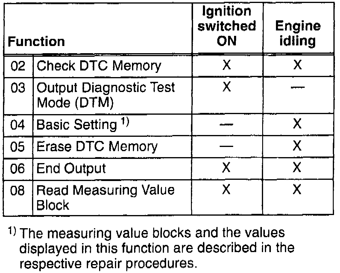 NOTE: Correct Motronic Engine Control Module number and coding are displayed only with the engine running at idle speed (Closed Throttle Position).