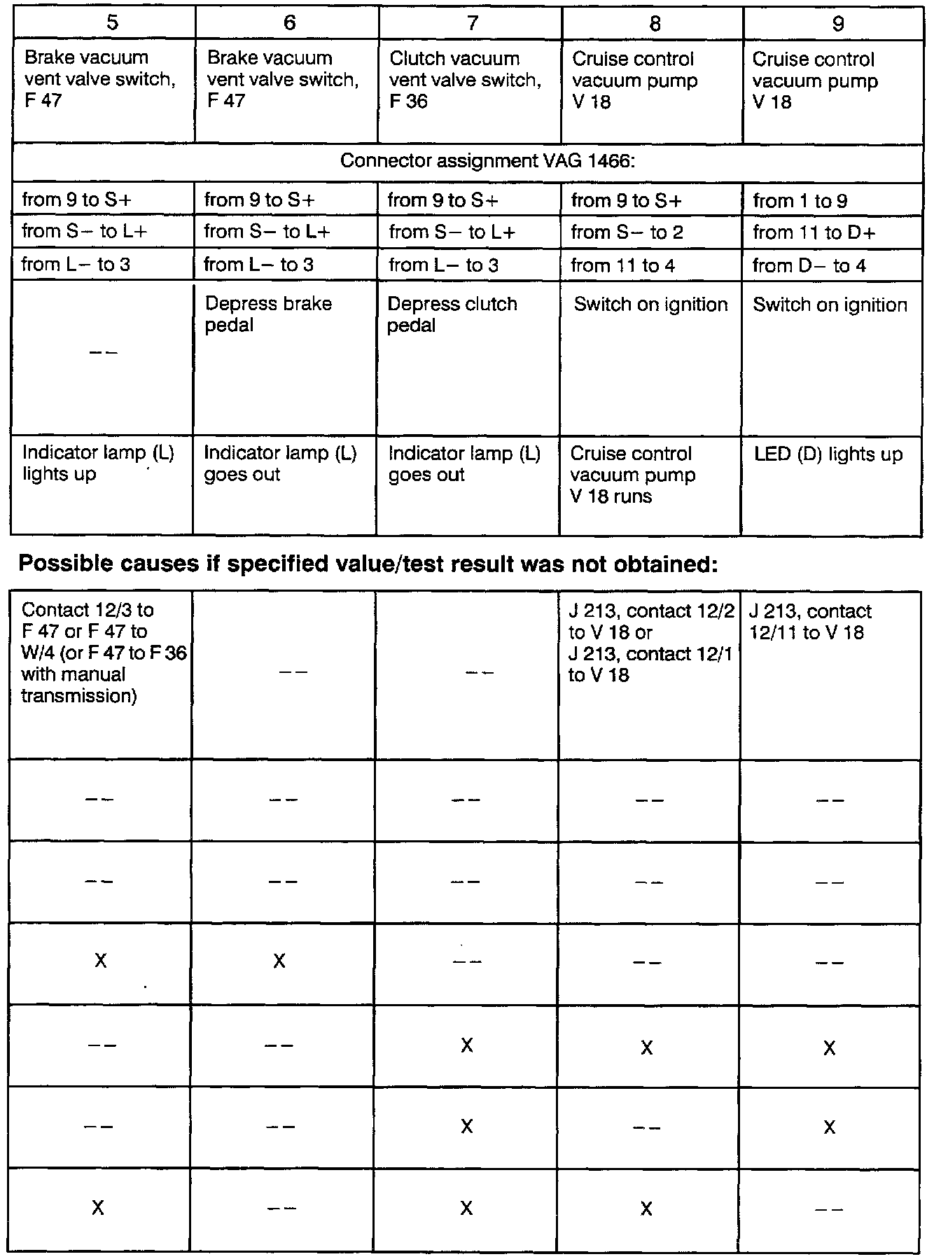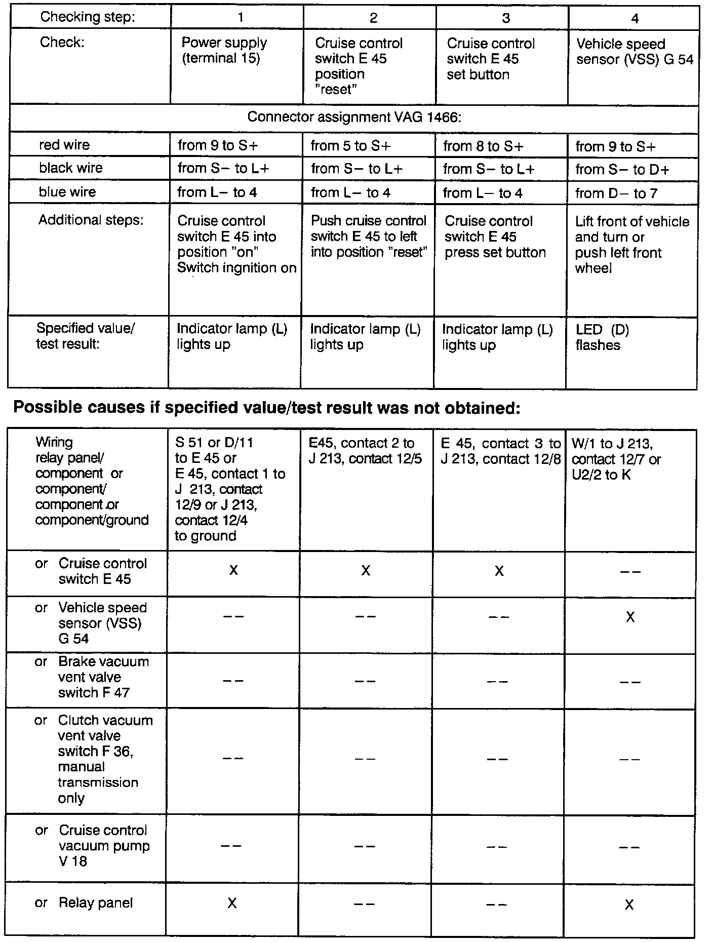 - If specified value/test result is not obtained, use table for troubleshooting and repair.