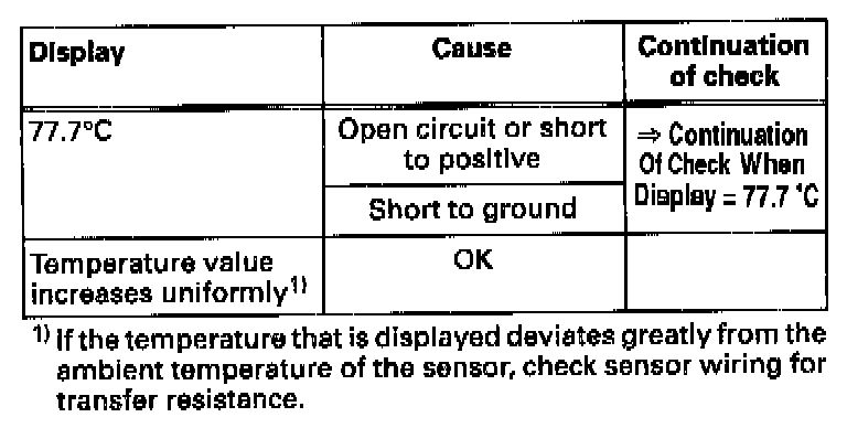 - If irregular engine running occurs in certain temperature ranges and the temperature value does not increase without interruption, the temperature signal is temporarily interrupted and the sensor must be replaced.