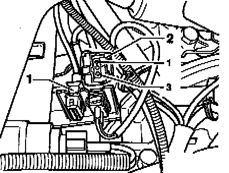 - Disconnect brown 3-pin harness connector -2- from knock sensor 1 G61 socket -1-,