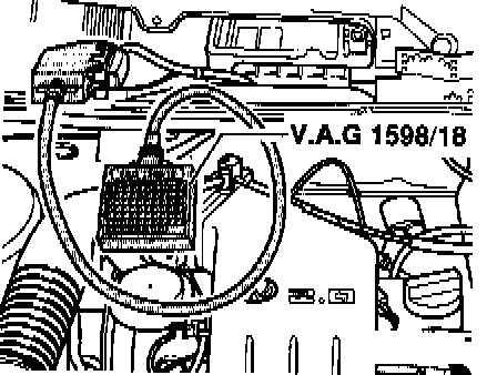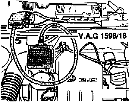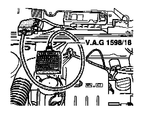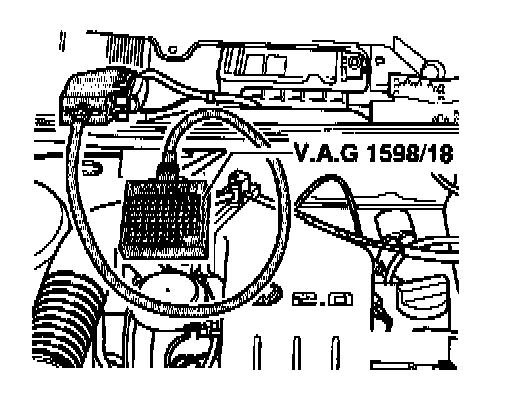 - Disconnect 2-pin connector from valve and connect diode test lamp VAG 1527 to disconnected connector, using adapter cables from VW 1594 test kit.