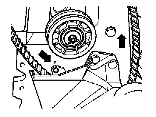 - Mark on camshaft sprocket must align with arrow on cylinder head cover.