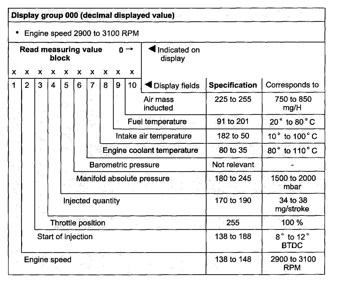 Measuring values must be printed out or read (2nd person required) when engine speed reaches 3000 RPM.