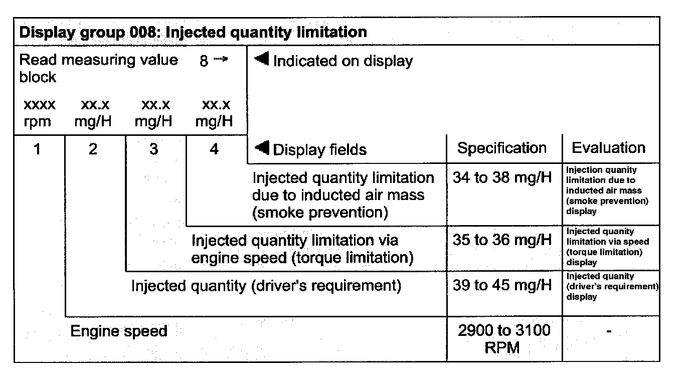 Measuring values must be printed out or read (2nd person required) when engine speed reaches 3000 RPM.