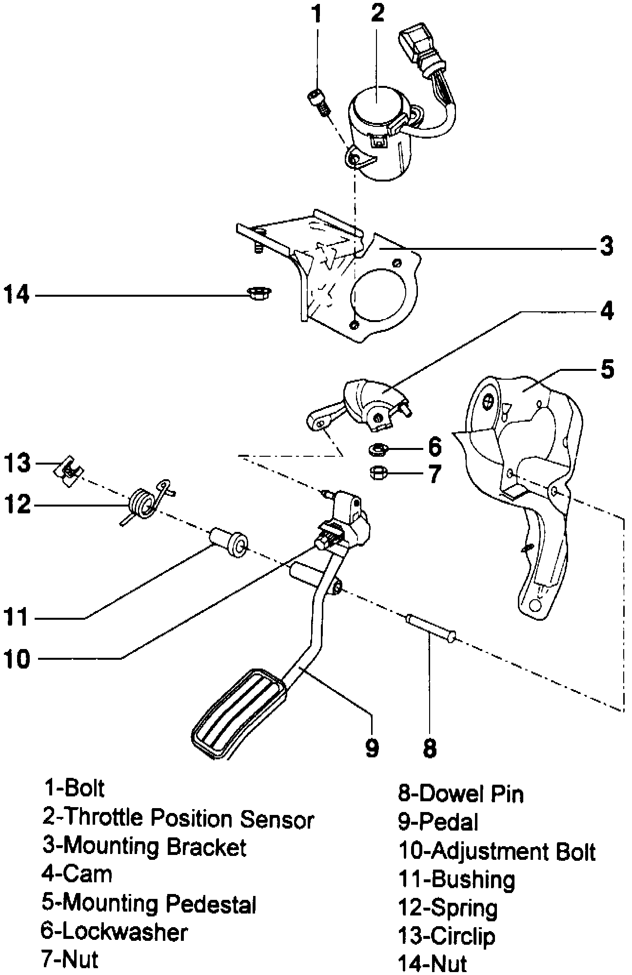 3. Secure bracket with sensor to vehicle, then install pedal, bushing, spring, pin and clip.