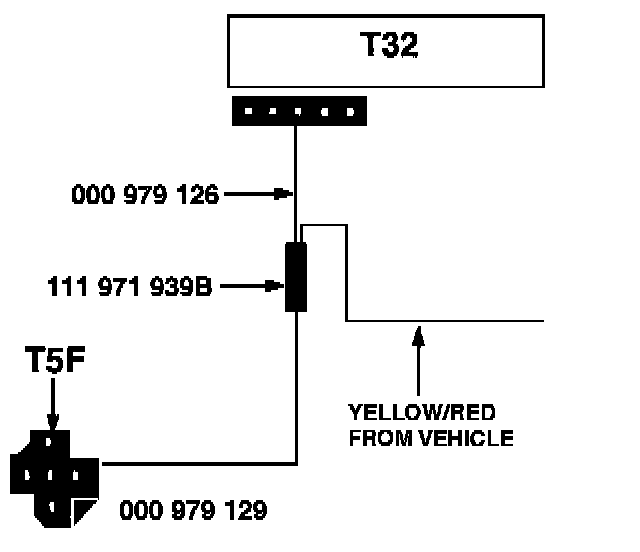- Insert (male) terminal of wire 000 979 129 into open connector location of black 5 pin connector T5/5f behind left A-pillar kick panel.
