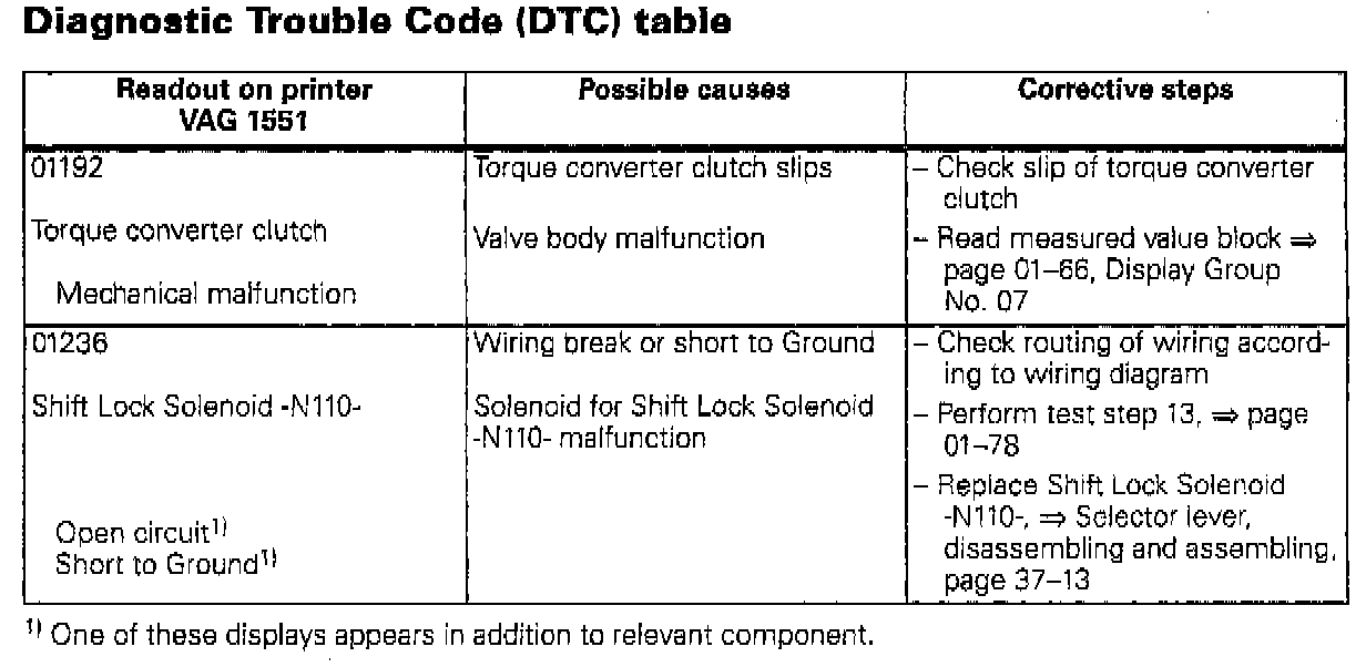 The automatic transmission control module can additionally recognize two Diagnostic Trouble Codes (DTC) not currently shown in the Repair Manual.