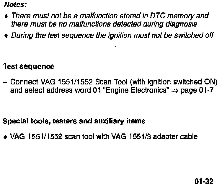 To display Readiness Codes the VAG 1551 Scan Tool must meet the following requirements: