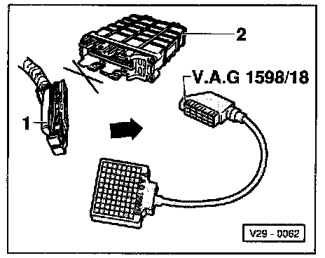 - Connect VAG 1598/18 test box to wiring harness connector.