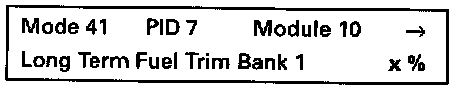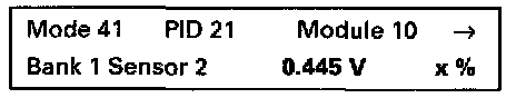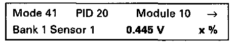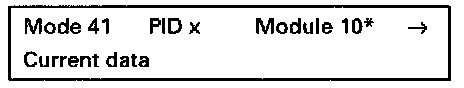 In mode 1 the current diagnostic data can be interrogated. Additionally the readiness code can be displayed (PID1 display field 4).The On Board Diagnostic (OBD) program can be used to check whether individual parameters correspond to actual engine condition.