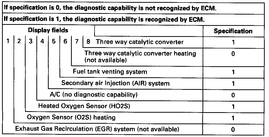 When the 1st and the 2nd position from right is 1, the heated oxygen sensors are recognized as available.