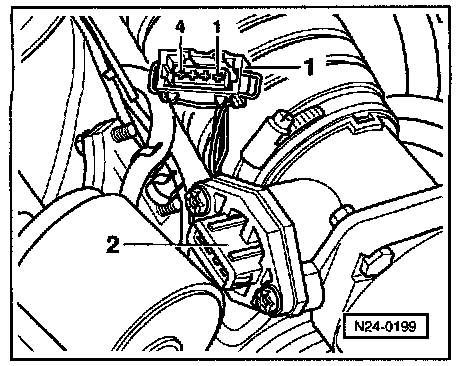 - Disconnect 4-pin connector from Mass Air Flow (MAF) sensor.