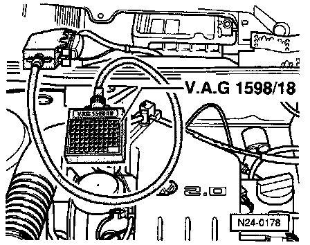 - Connect VAG 1551/1552 scan tool and select "Engine Electronics" address word 01. Refer to "On-Board Diagnostics II With VAG 1551". Testing and Inspection