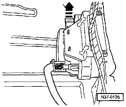 - Release multi-pin connector in direction of arrow and disconnect control module.