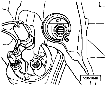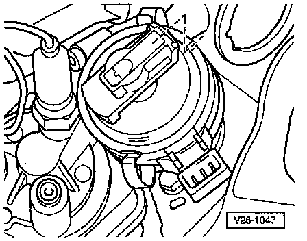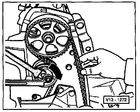 - Loosen belt tensioner and take toothed drive belt off camshaft sprocket.