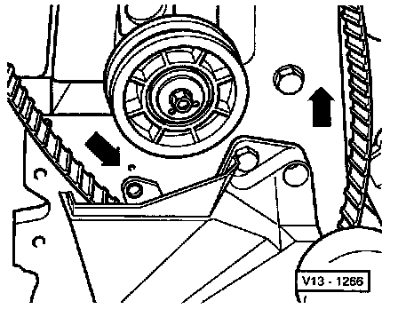 - To tighten toothed drive belt, turn tensioner with pin wrench (e.g. Matra V159) in direction shown (arrow).