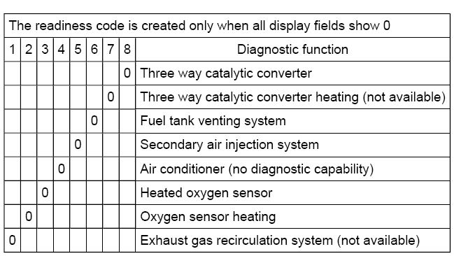 - Read readiness code. If DTC memory has been erased, repair must be verified via appropriate display group, Readiness code, creating.