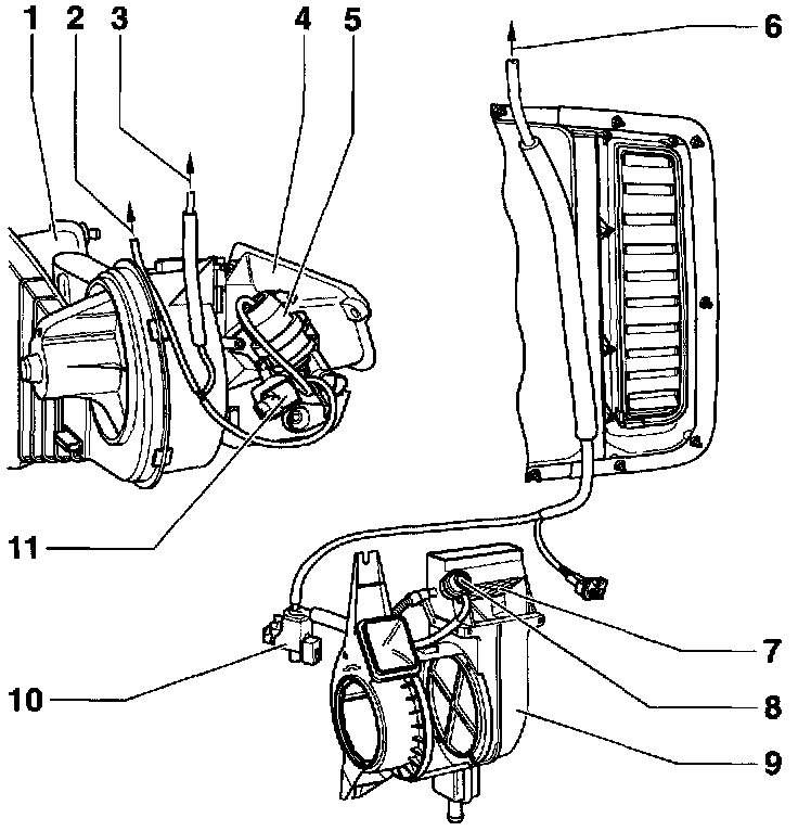- Routed through loops to rear fresh and recirculating air flap two-way valve -N45-.