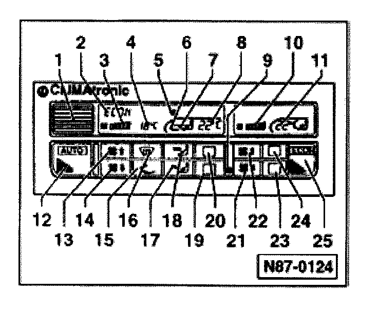 - When blower speeds and air distribution have been selected manually, pressing "AUTO" button -12- will cancel all manually selected functions.