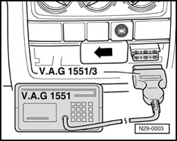 - Connect VAG 1551/1552 scan tool with VAG 1551/3 adapter cable.