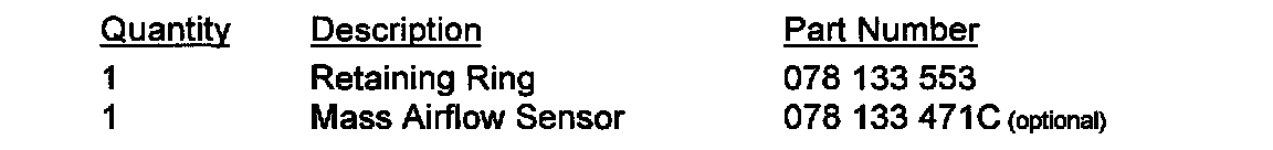 Check affected vehicles and, if necessary, install a retaining ring into the mass airflow sensor housing.