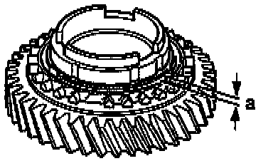 - Press synchro-ring onto cone of gear and measure gap -a- with feeler gauge.