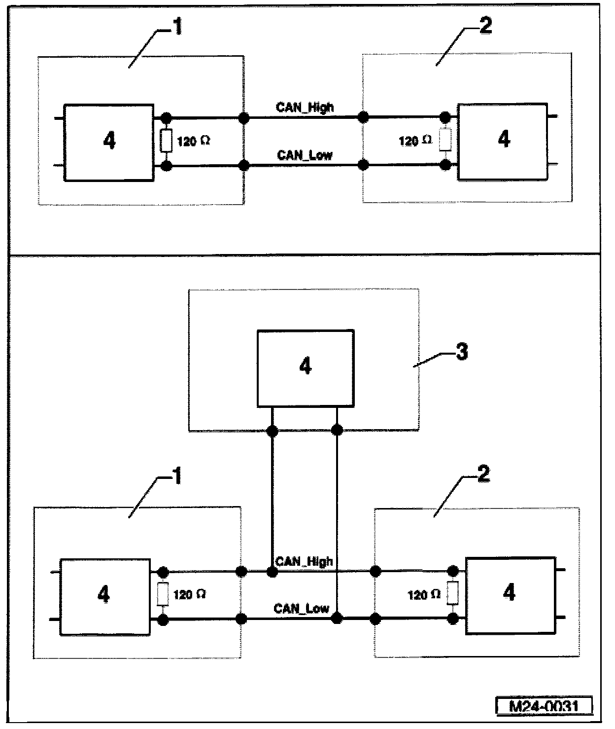 Two control modules have 120 terminal resistors which make sure that the CAN-Bus can function without malfunctioning. These terminal resistors are located in the engine and ABS control modules.