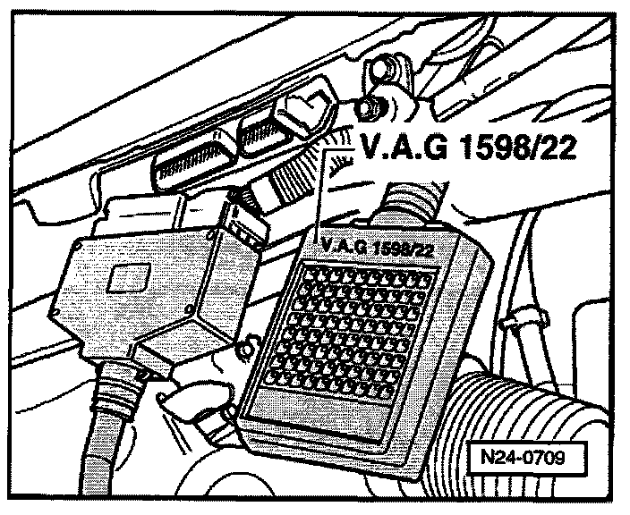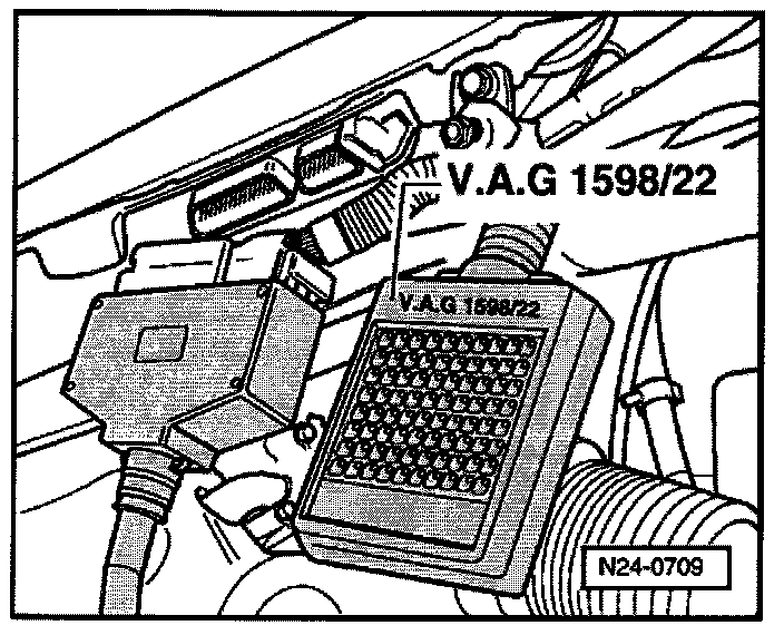 - Connect VAG 1598/22 test box to Engine Control Module (ECM) wiring harness.