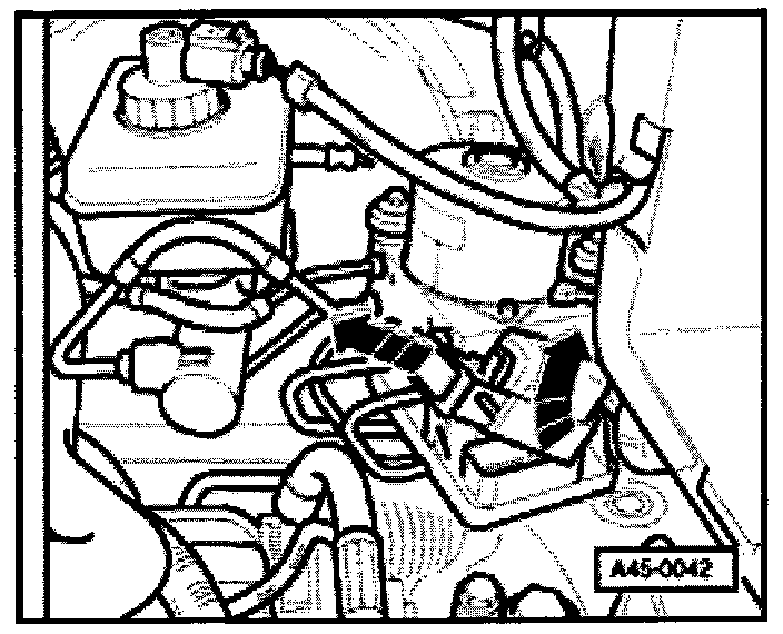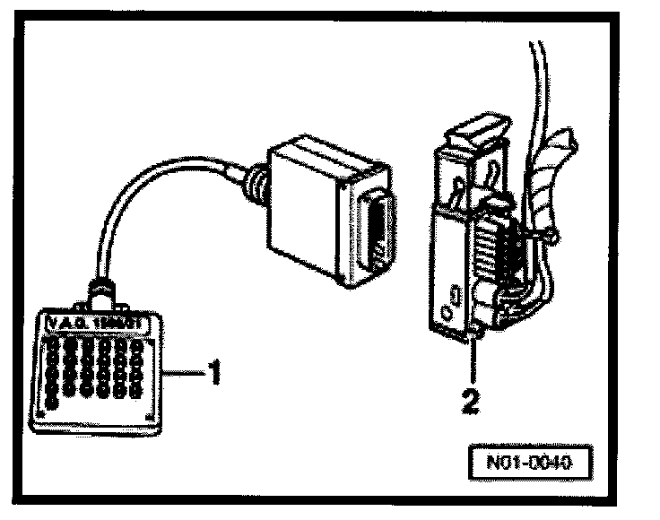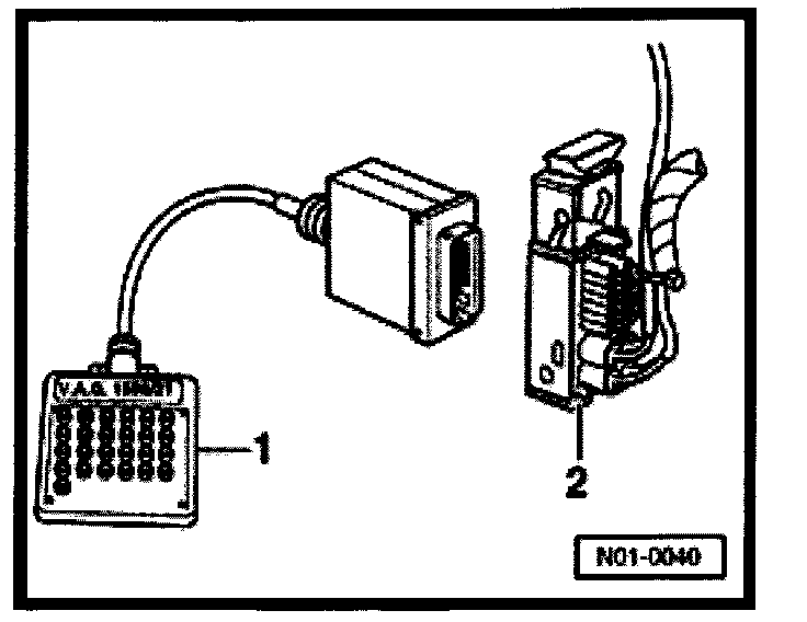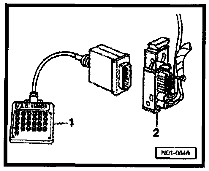 - Connect test box VAG 1598/21 -1- to ABS control module wiring harness connector -2-.