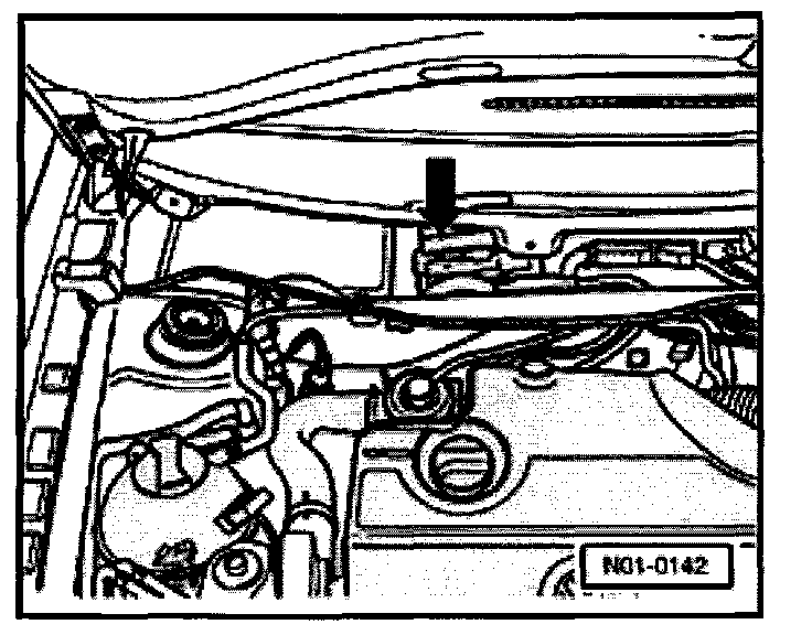- Connect VAG 1598/18 test box to transmission control module wiring harness -1- and secure harness connector -2-.