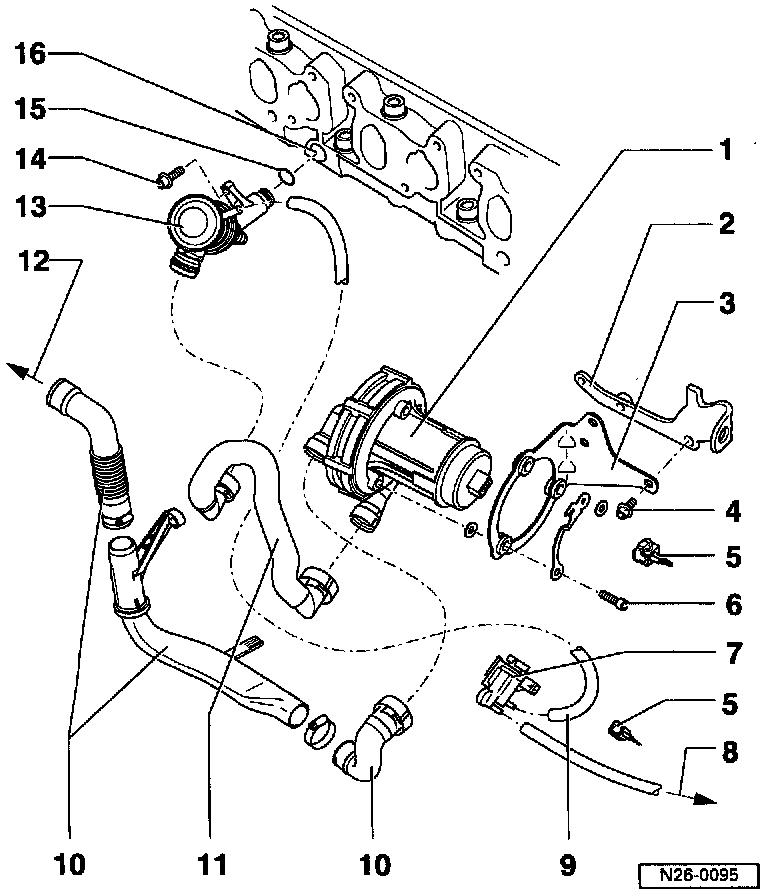 - From secondary air injection solenoid valve -7- to combination valve -13-