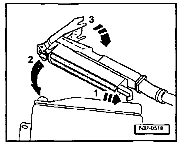 - Place multi-pin connector on transmission control module connector housing -1-, swing in -2- and lock -3-.