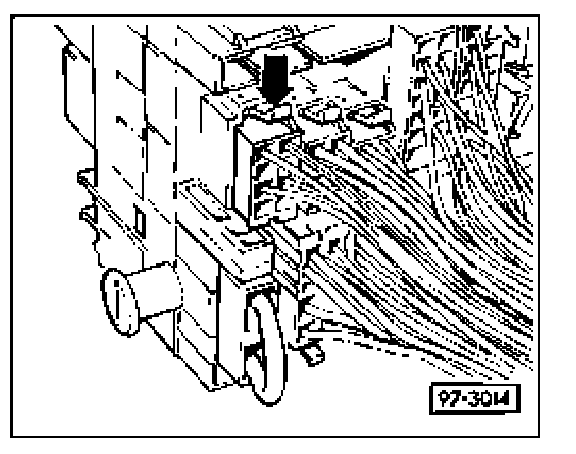 - Depress locking clip (arrow) and pull multi-point connector from fuse/relay panel.