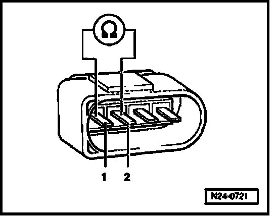 - Check resistance for sensor heater at connector to oxygen sensor terminal 1 + 2.
