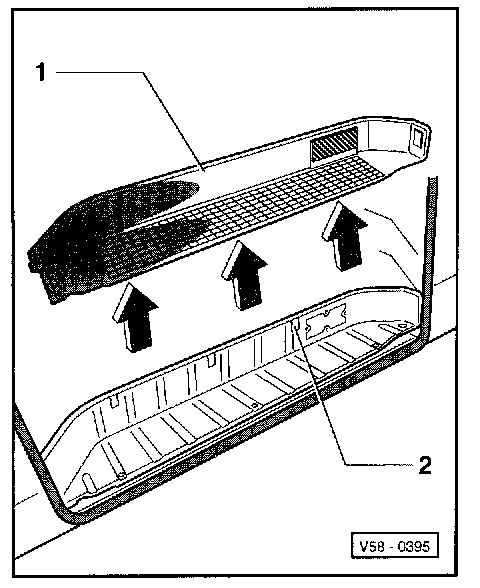 - Uncup step trim -1- at outside -arrows-, lift up out of clips -2-.