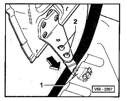 - Loosen screw -2- enough to adjust contour with outer B-pillar, then tighten both screws -2-.