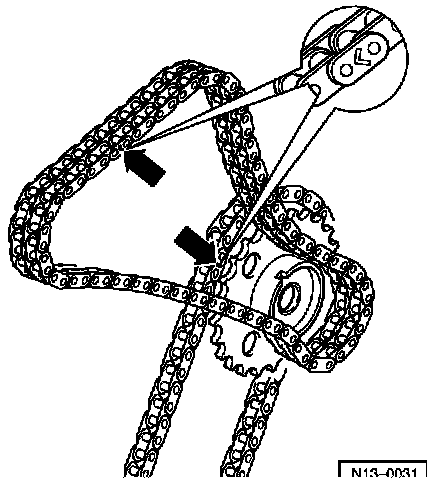 CAUTION: Do NOT mark the timing chain using a punch or any other mechanical device that could weaken the chain.