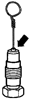 - Push piece of wire (0: 0.8 mm) through pressure piston hole -arrow- up to ball valve and press piston and housing together onto stop