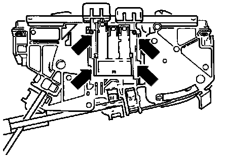 - Press switch at the four locating points -arrows- against the controls and in direction of buttons simultaneously.