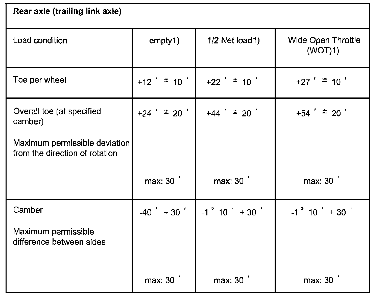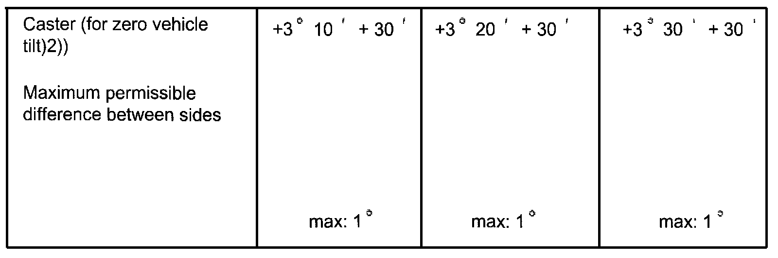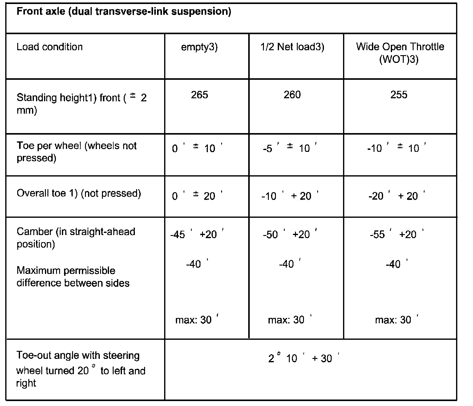 1) If vehicle height (ride height) has to be adjusted, the front axle alignment should be checked in full. After adjusting the vehicle height, push vehicle forwards and backwards over approx. 2m, then re-check height.