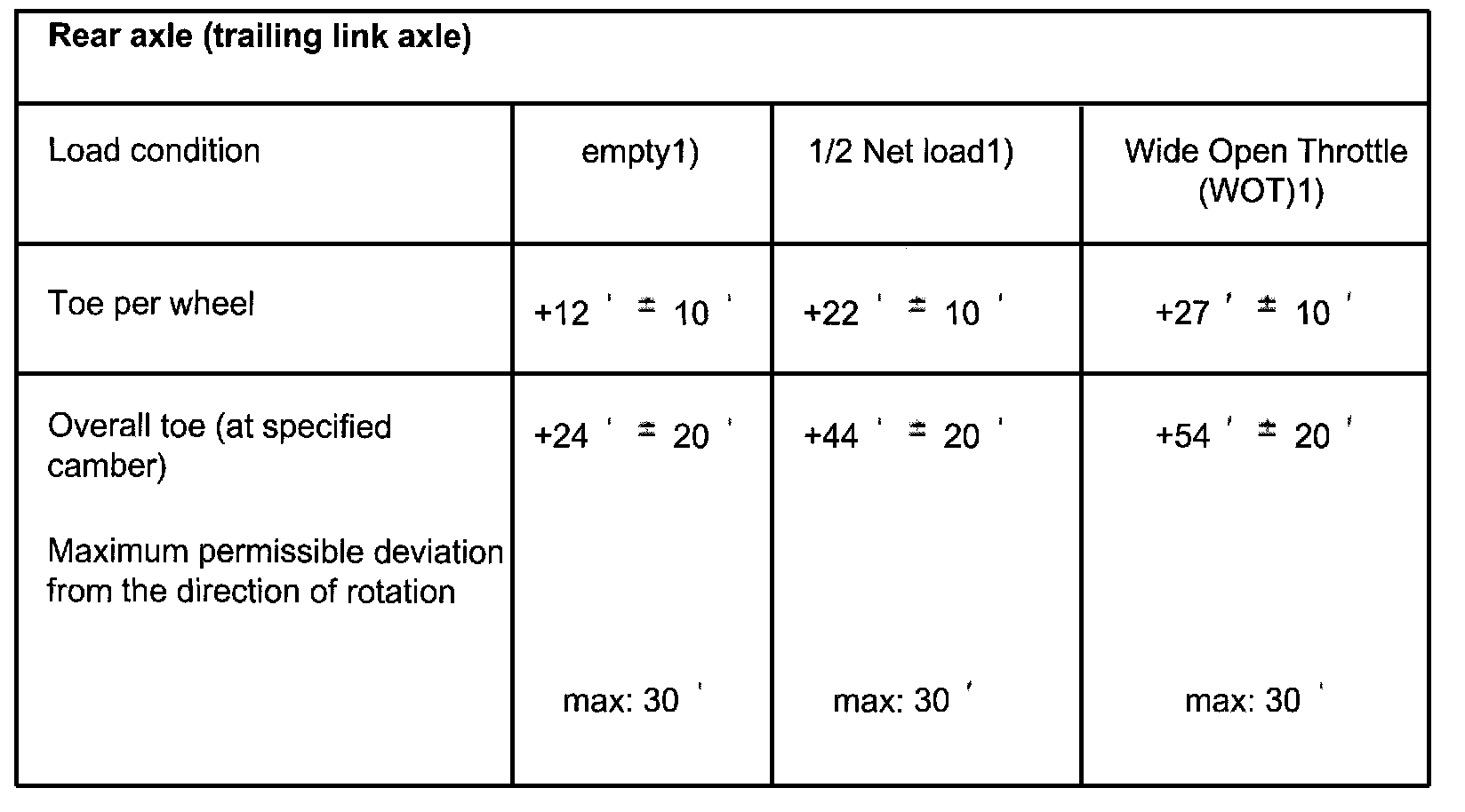 1) If vehicle height (ride height) has to be adjusted, the front axle alignment should be checked in full. After adjusting the vehicle height, push vehicle forwards and backwards over approx. 2m, then re-check height.